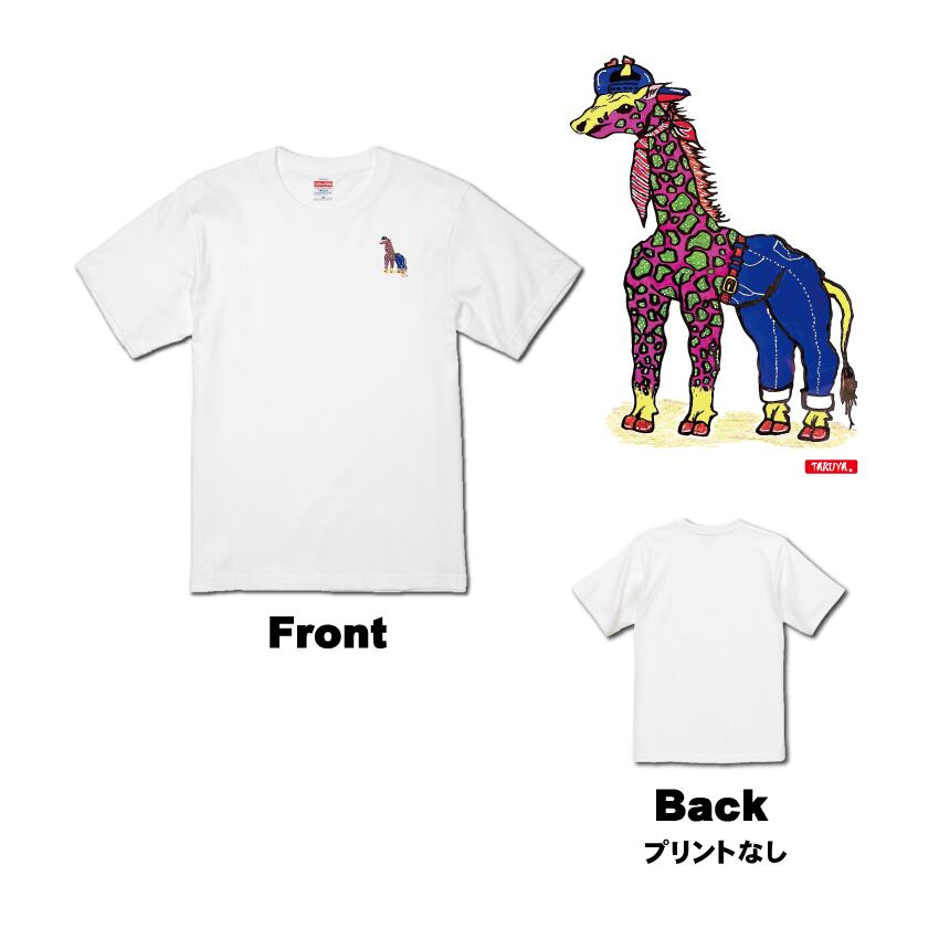Tシャツはシンプルながらも、個性的なプリントデザインが特徴。きりんの姿が、胸元にあしらわれており、大人かわいい印象です。普段使いはもちろん、さまざまなシーンで活躍すること間違いありません。